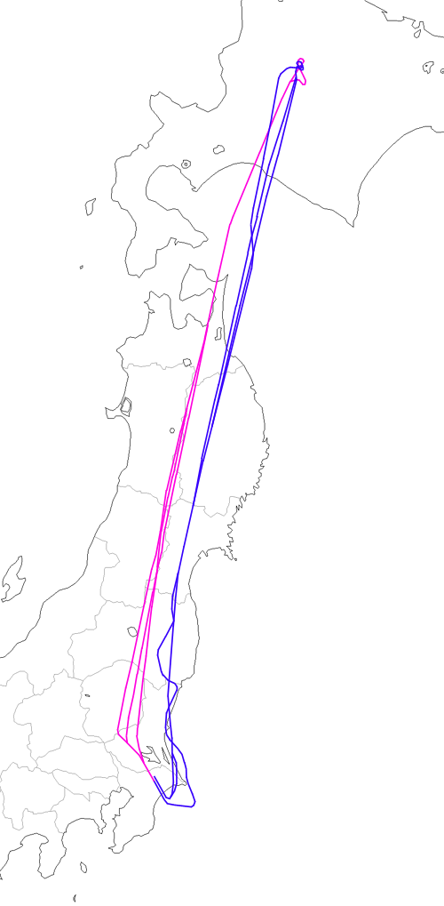 なお、帰りのうち1回は福島あたりから左右にふらつくコースとなっているが、