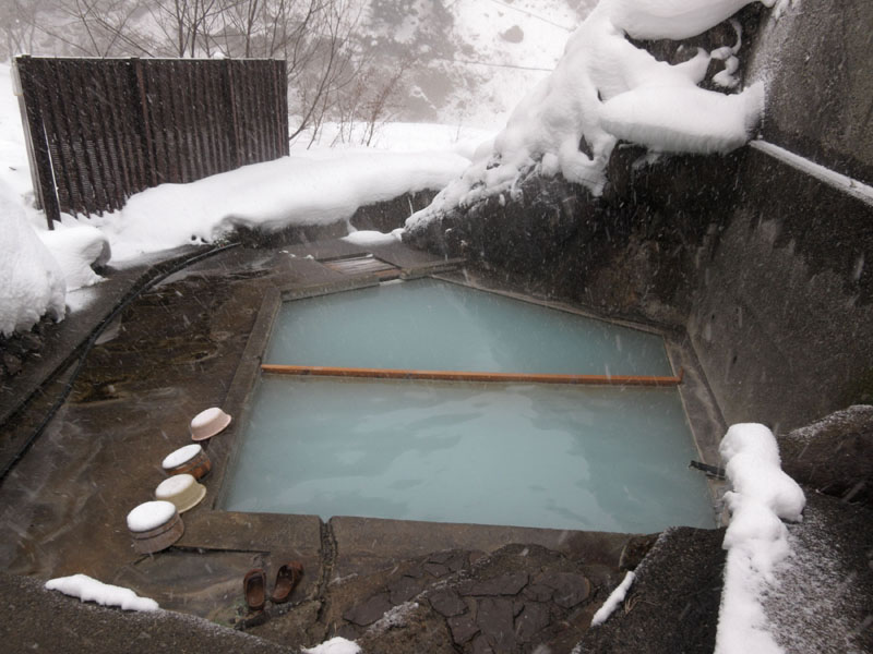 露天風呂のうち上段は、かなりぬるくて、冬は一度入ると出れなくなる。