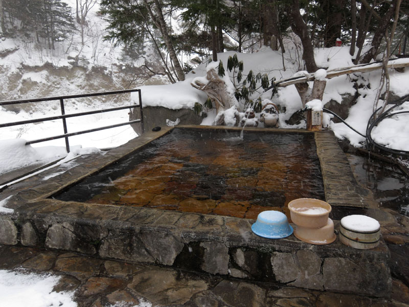 男湯は強烈な硫黄の湯船で、45℃くらいでやや熱いが寒い中入るのは快適。