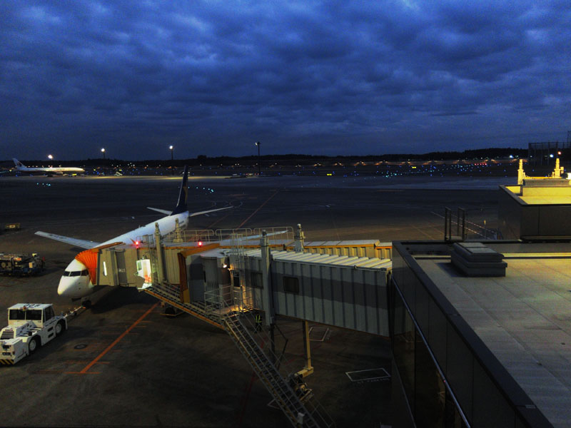 朝一の成田空港はまだ日の出前だな。