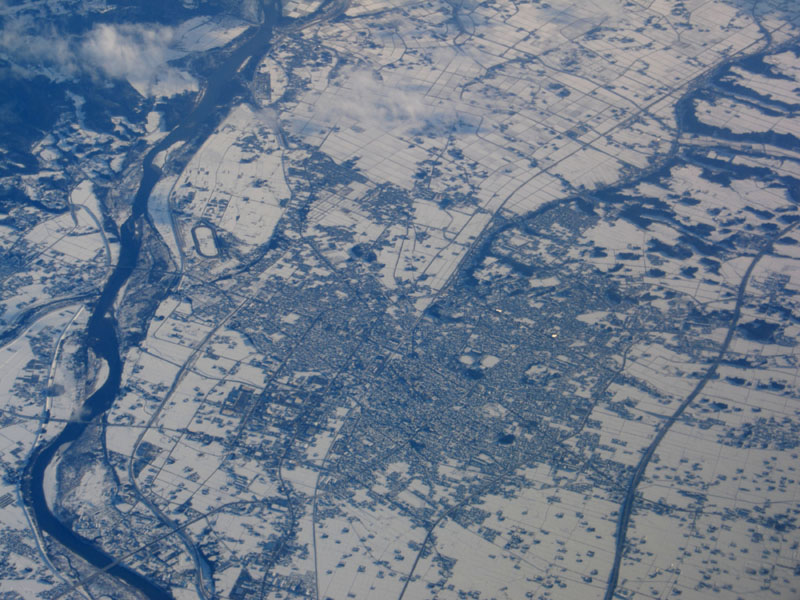 旭川周辺はべったりと雲に覆われている。