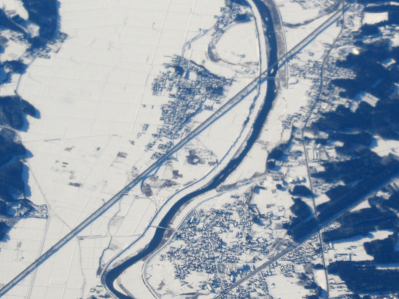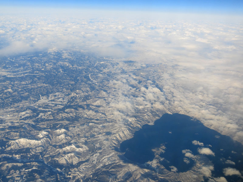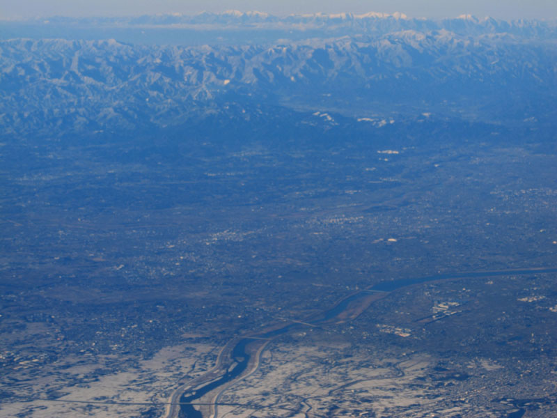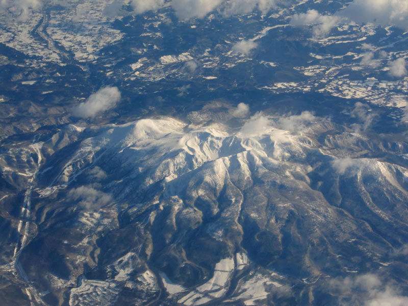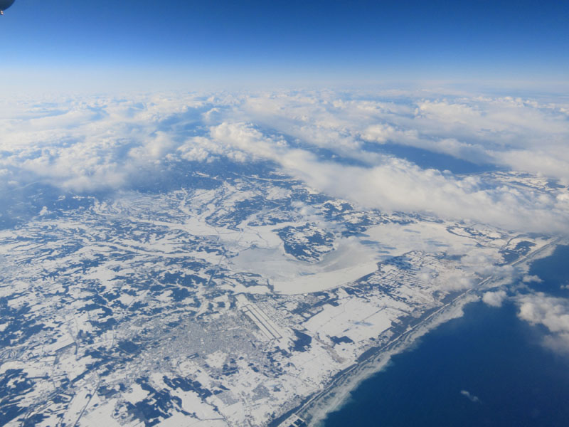 津軽半島。白い線が見えるのは、建設中の北海道新幹線。