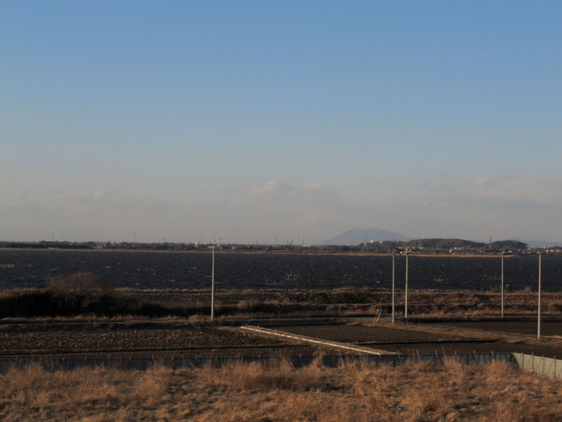 アクセス特急から印旛沼の眺め。奥には筑波山か。