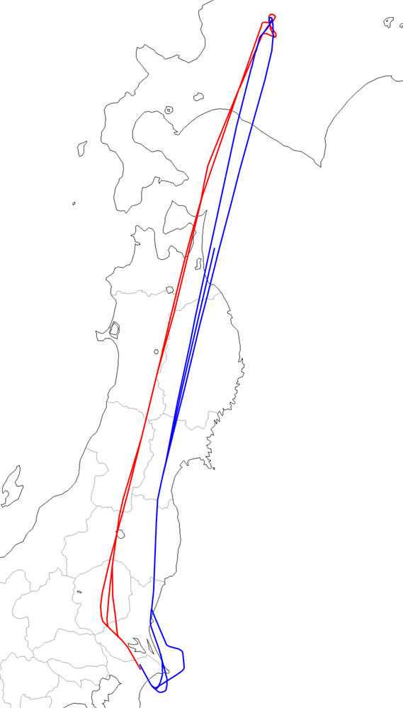 レーダーによる飛行経路を示してくれるサイトのデータを利用し、