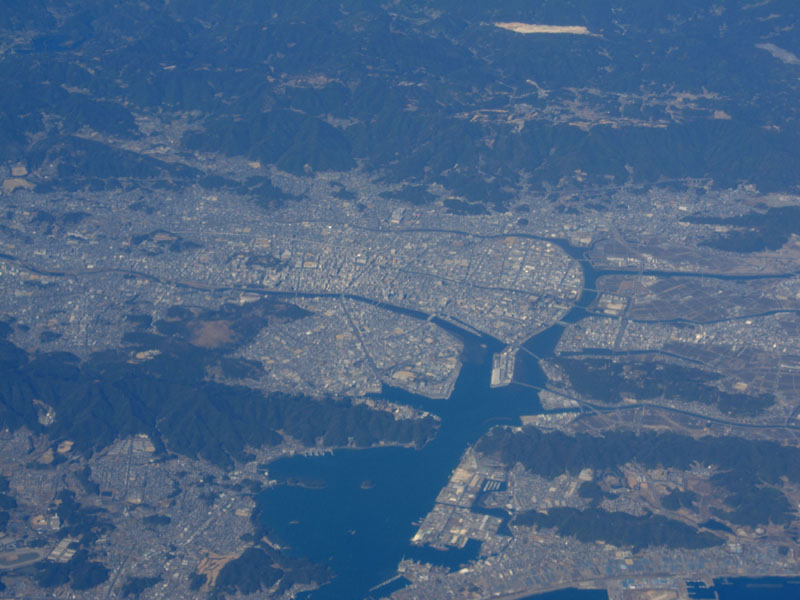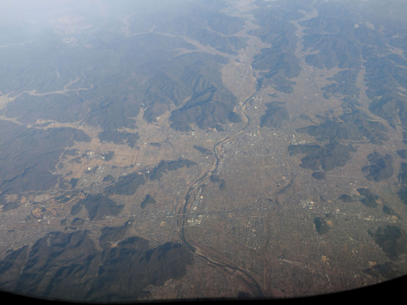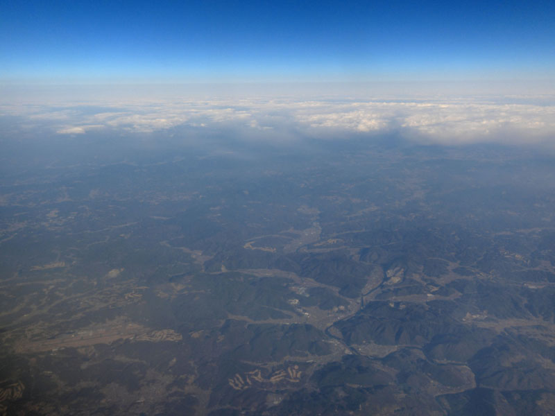 岡山あたりからはさらに高度を下げて6000mくらいの低空を巡航だ。