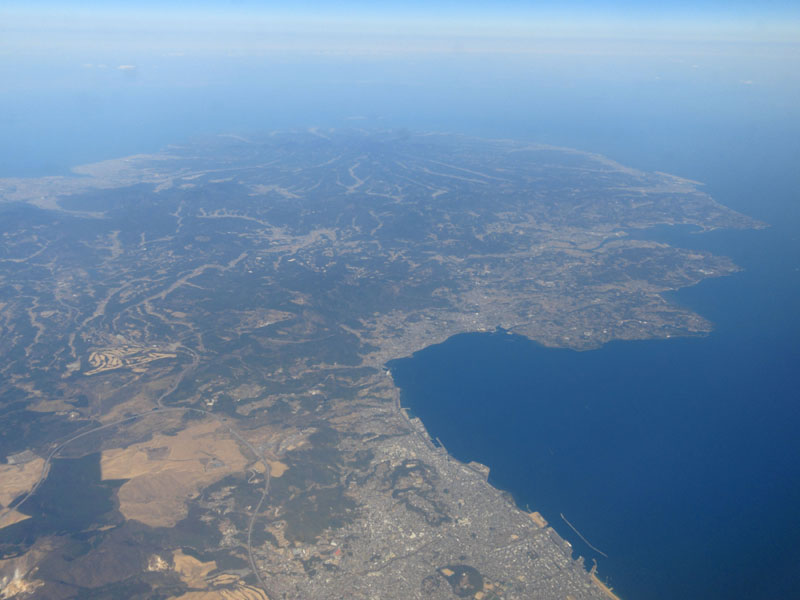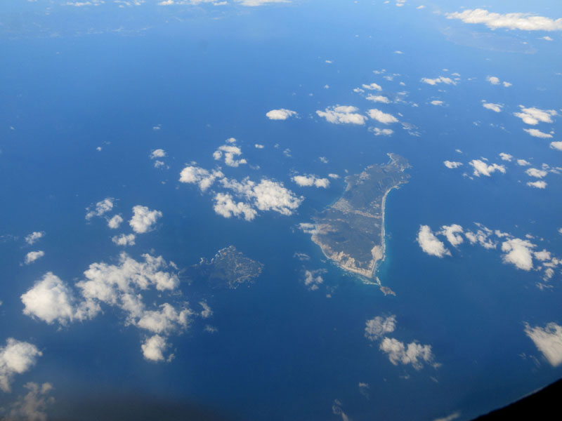 伊豆諸島の新島。このあたりから高度を下げ始める。