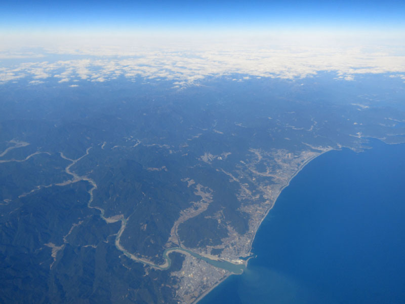 高知空港のあたりから海上飛行。