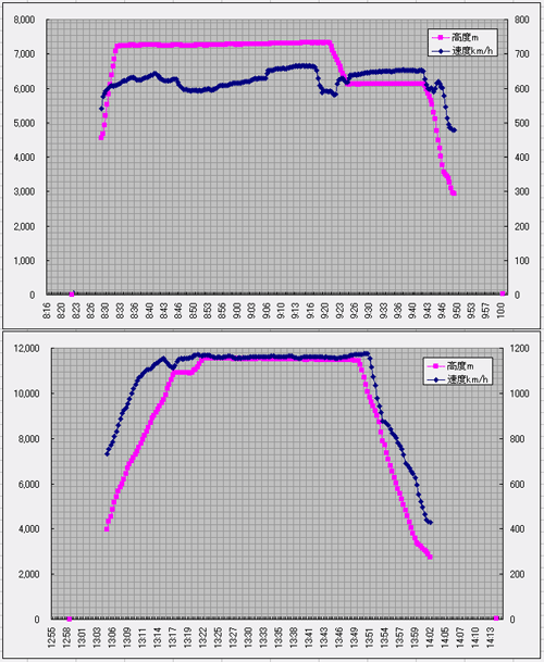 帰りは追い風を最大限に活用するために高度12km前後で、
