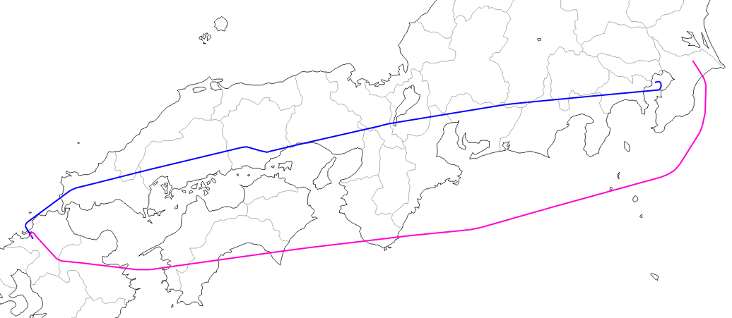 浜松沖にある自衛隊の訓練空域を避けるためのようだ。