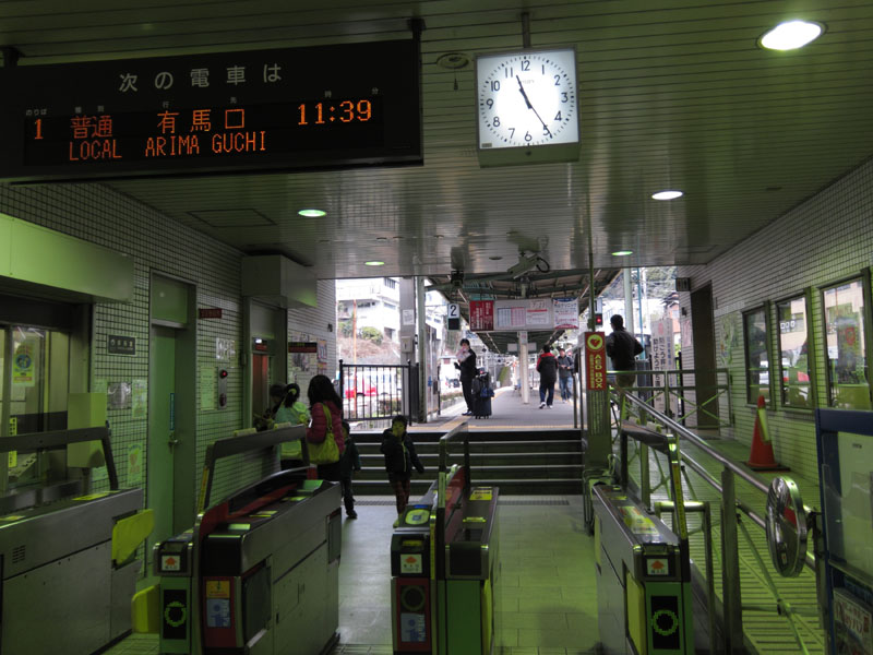 神戸空港からは電車を4つ乗り継ぎ、有馬温泉へ向かう。