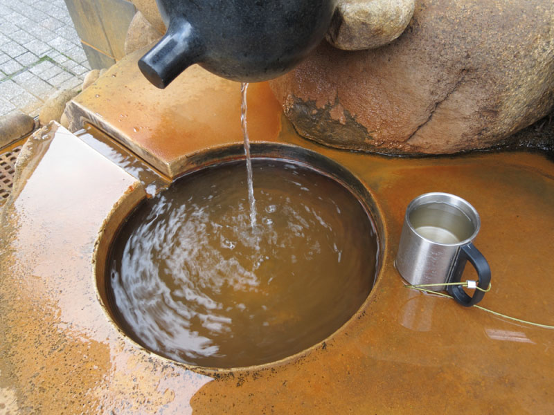 金の湯は透明度5cmくらいの超高濃度の塩化物泉で、