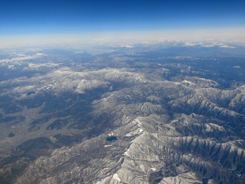 南アルプスよりも東は通常の羽田便とほぼ変わらない場所を飛ぶ。