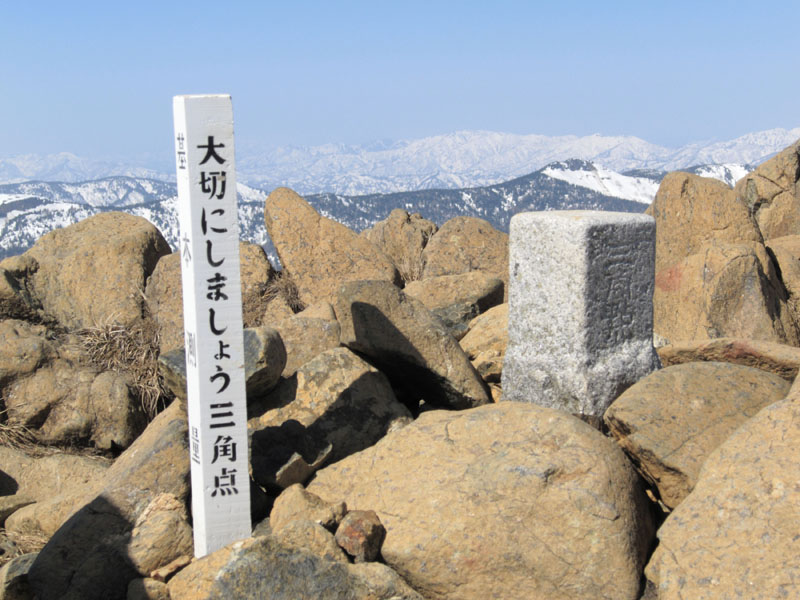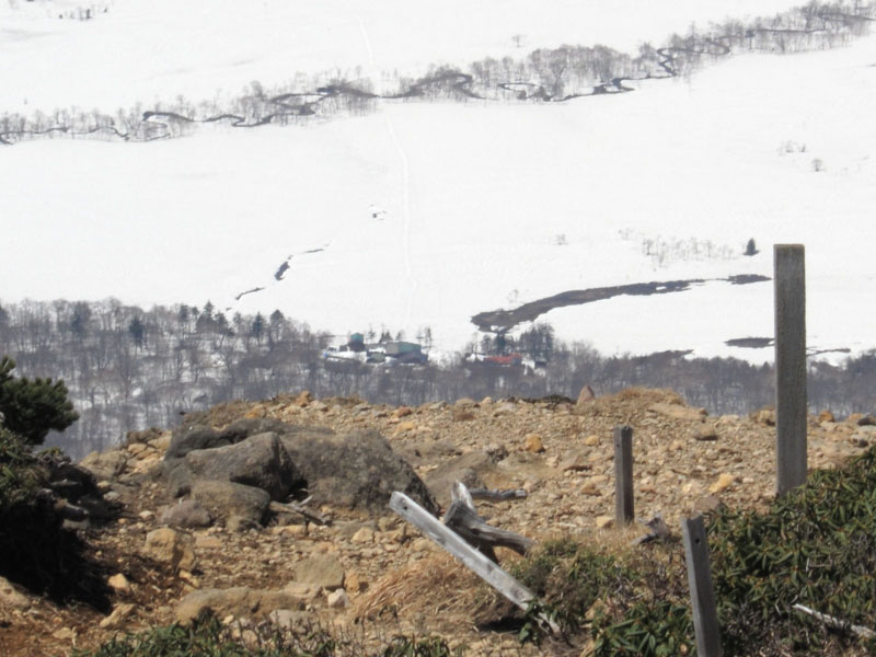 反対側(御池側)は雪の急斜面になっており行くのを諦める。