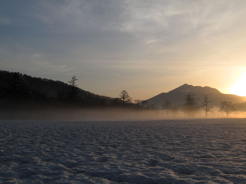尾瀬ヶ原に再度繰り出すと、朝霧が出ており幻想的な雰囲気に。