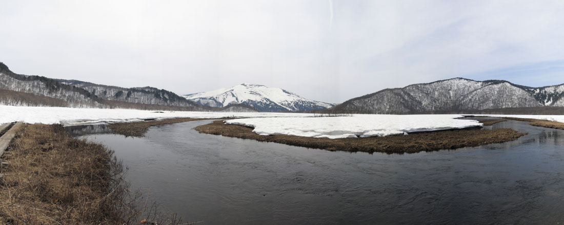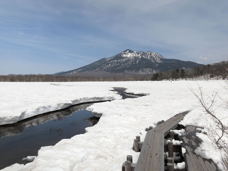 雪が腐った尾瀬ヶ原を歩くのは結構大変だった。
