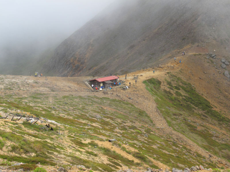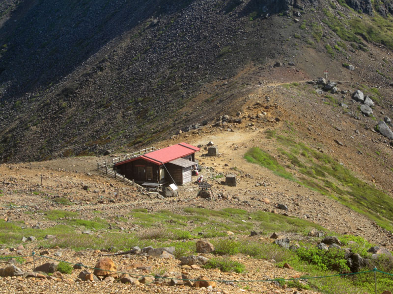 峠にある避難小屋は非常に快適そうだが、避難専用で宿泊禁止だそう。