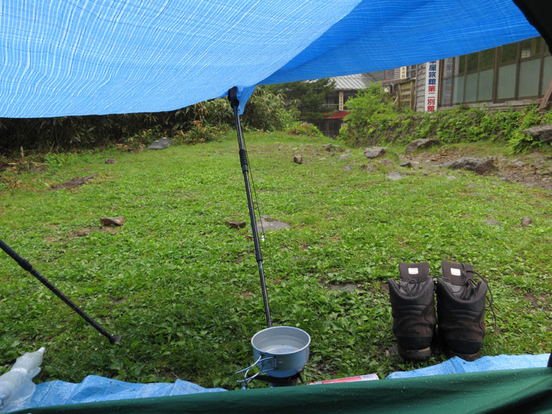 テント場で昼飯兼夕食にする。