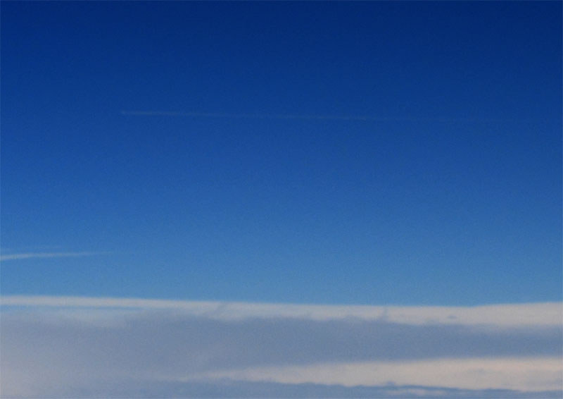 はるか先、隣の航空路を同じ方向に飛ぶ飛行機が見える。