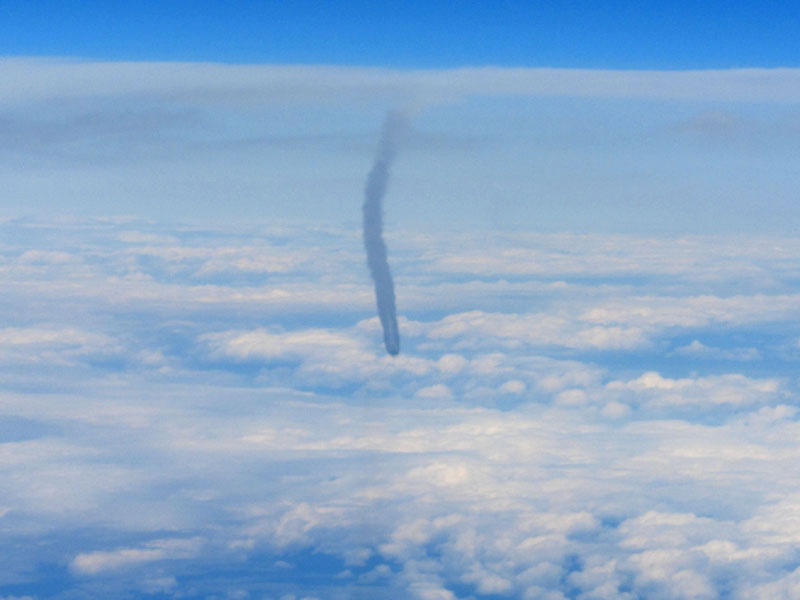 飛行機雲の影が眼下の雲に映っているのがわかった。