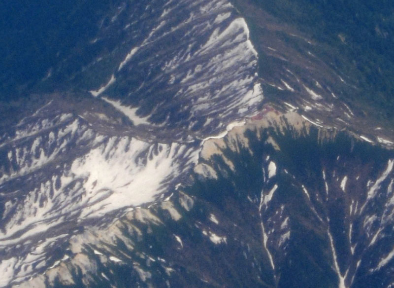 ちなみに巨大山小屋シリーズのうち1つ、燕山荘も見えた(中央よりやや右上)。