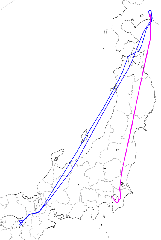どちらもほとんど最短ルートを飛んでおり非常に良い感じだ。