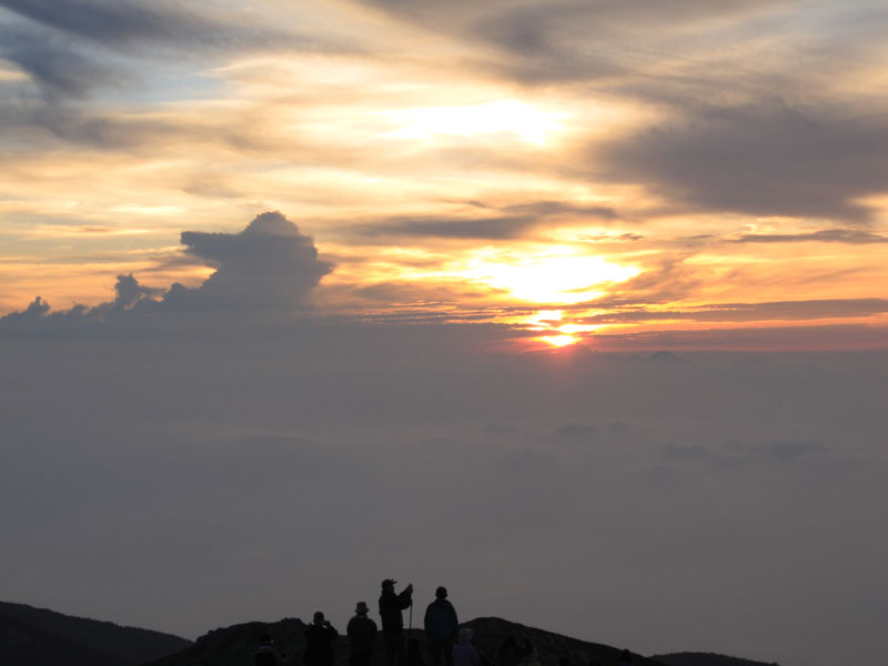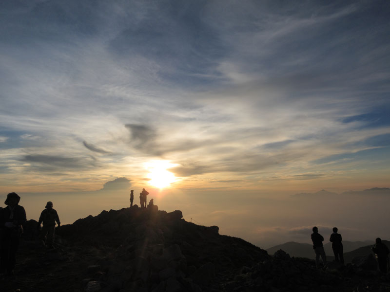 テントに入りつつ朝日が見れるが、暇なので頂上へ。