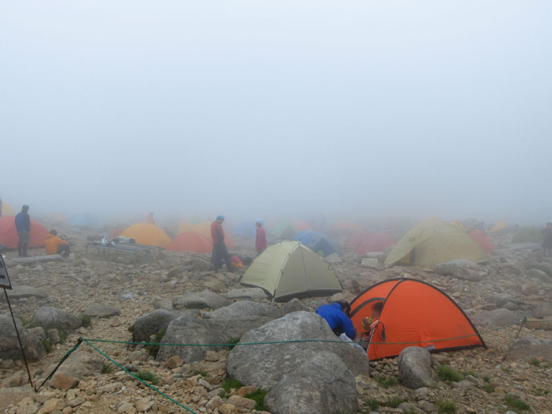 テント場は平和だが、小屋は1畳2人の大混雑になったようだ。