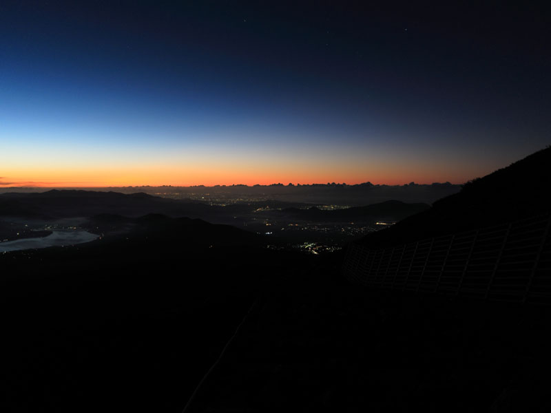 3時半に5合目をスタートし、6合目くらいまではヘッデンをつけて歩く。