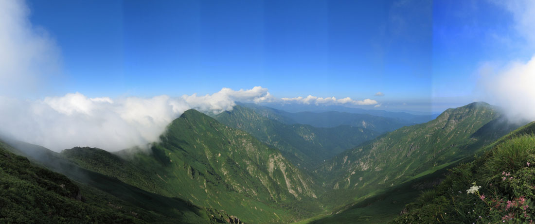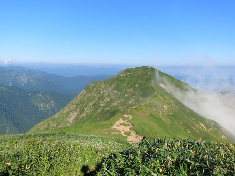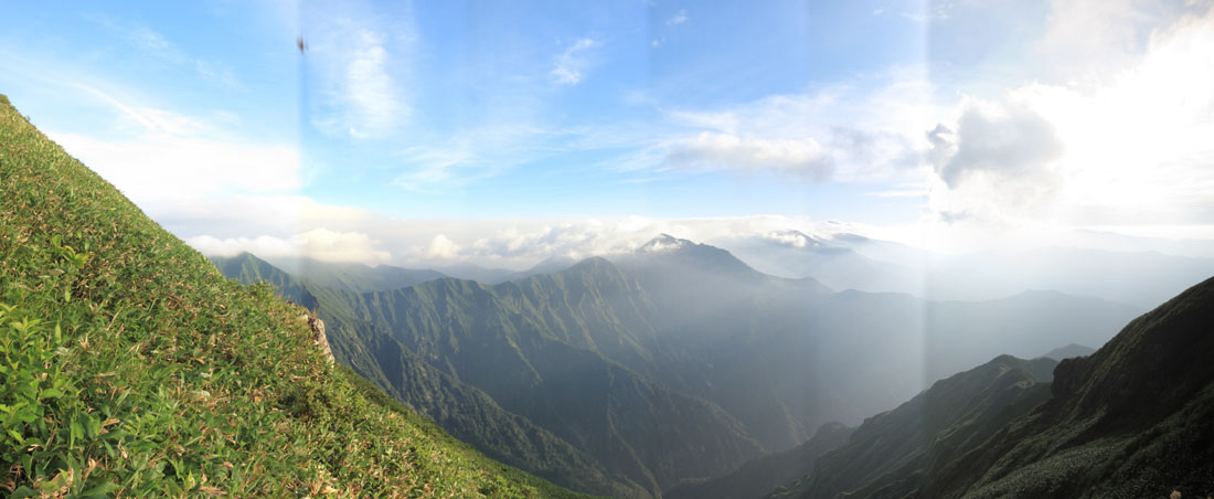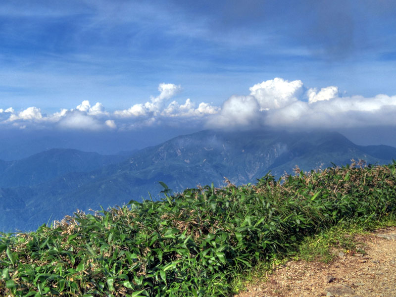 1500m程度から森林限界となり、それ以上は一面の笹原となる。