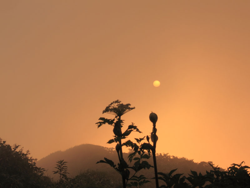 夕日になり沈むが薄いガスの中で幻想的な雰囲気。