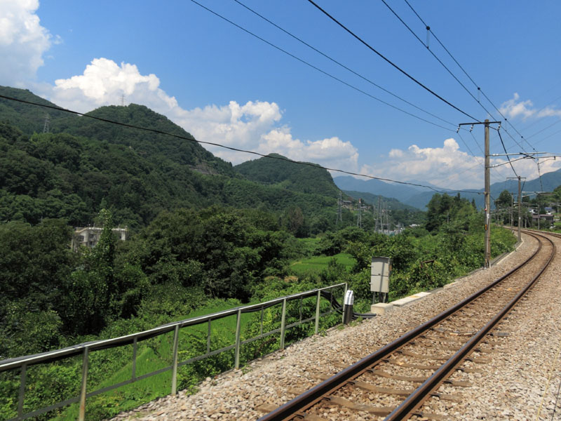 夏空がきもちよい。途中でSLみなかみとすれ違った。