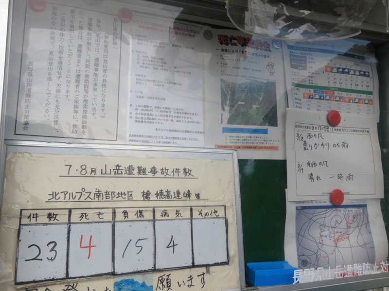 1日で穂高岳山荘(2980m)まで上がるのは今の体力的には厳しい。