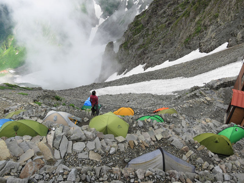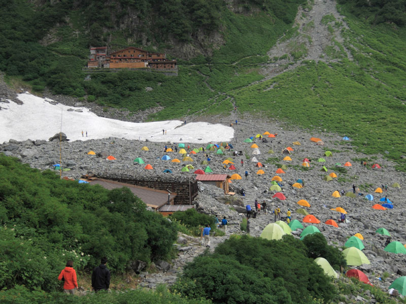 小屋は大混雑。涸沢までならそんなにきつくないしテントがおすすめか。