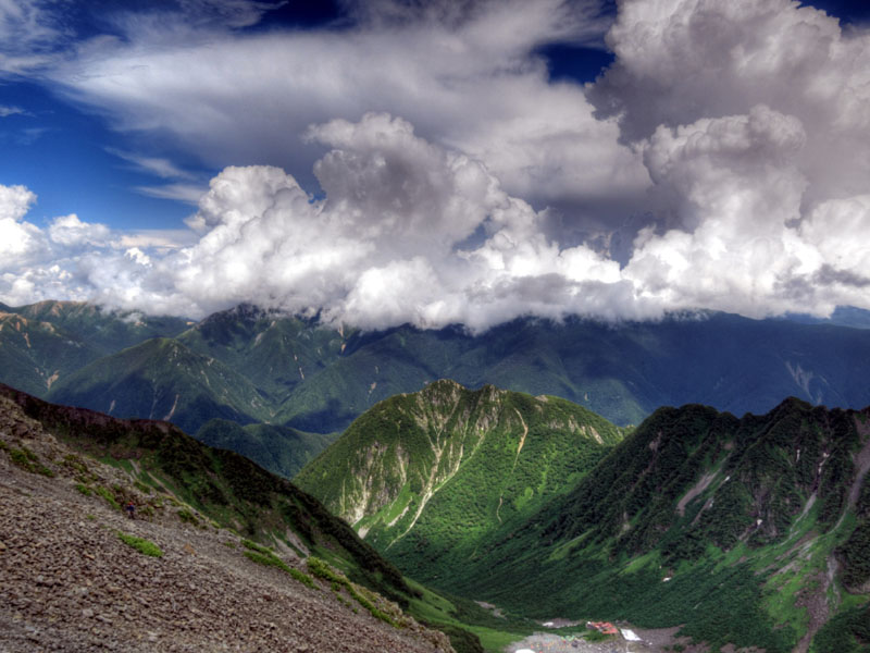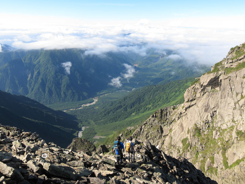 登山口の上高地1505mからは標高差1700mの登りとなり、
