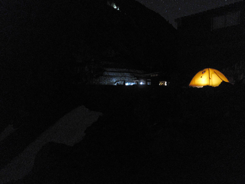 #3の寝袋でやや寒いので、湯たんぽ(山荘で¥200)とホッカイロで対応。