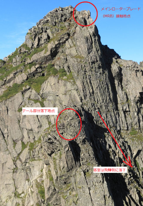 また、ジャンダルム手前に岐阜県のヘリ(JA96GF)の墜落地点があり、