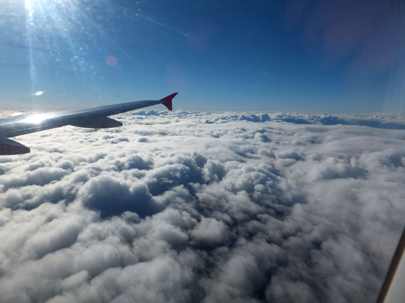 右側の席に移ると太平洋側がかろうじて晴れているのが確認できた。