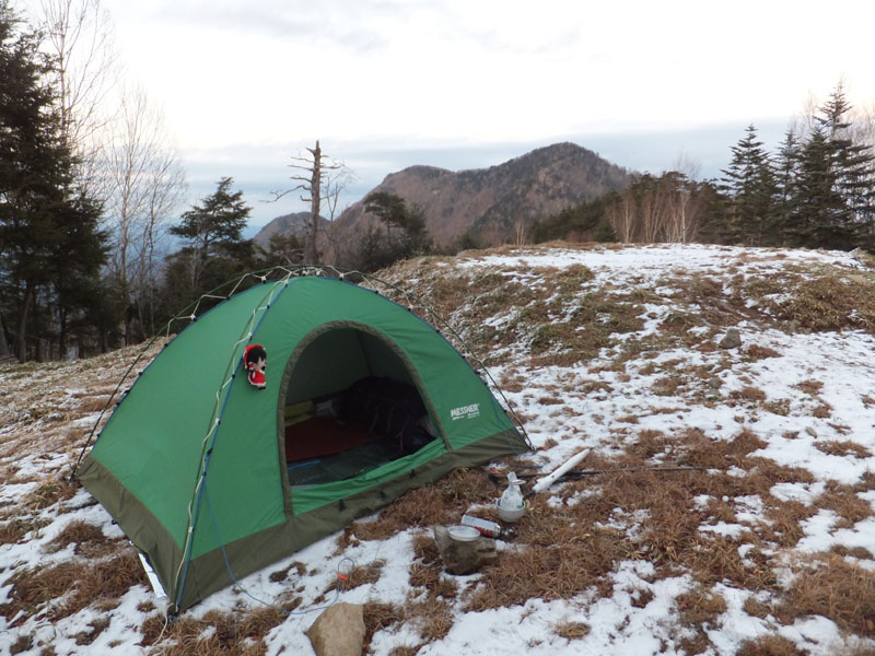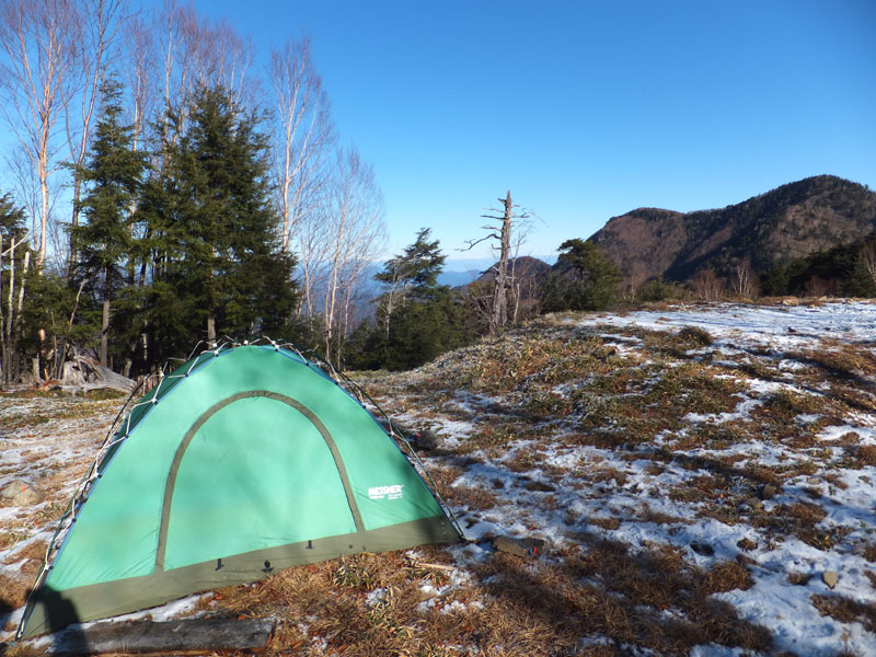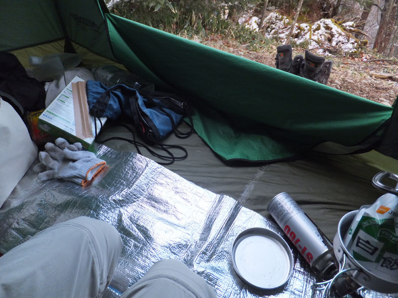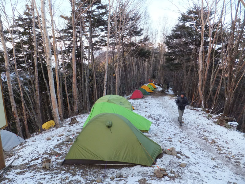 実際にはテント持参なのでテントを張り、テント泊だ。