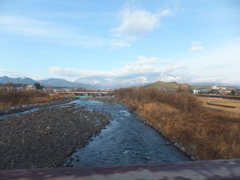男体山と女峰山が見える。冬型のためやや雲が掛かっている。