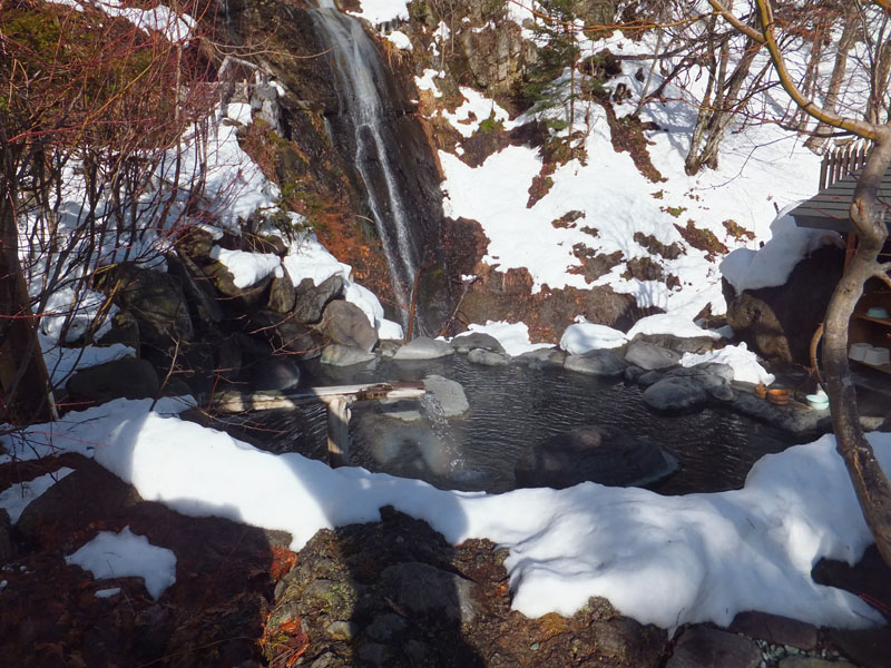 この時期は人も少なく、雪山の温泉が楽しめる。おすすめだ。