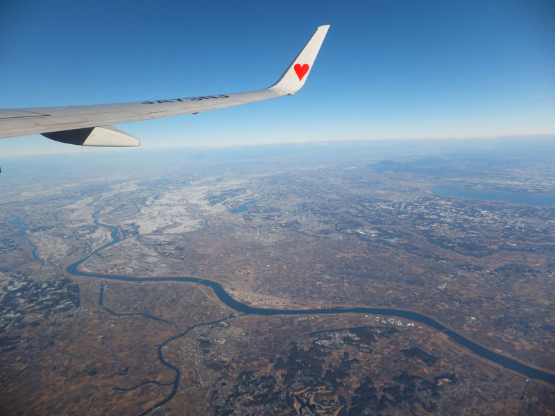徐々に高度を下げ始める。正面には関東の守護神、富士山だ。