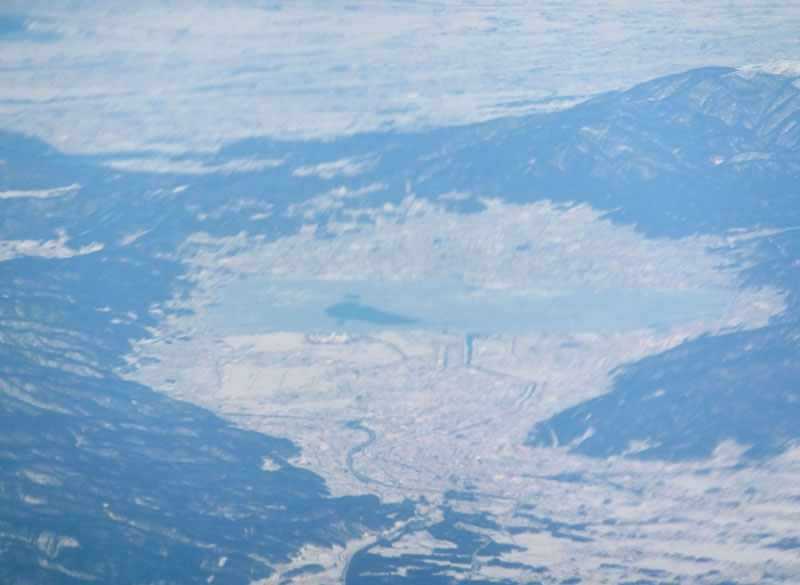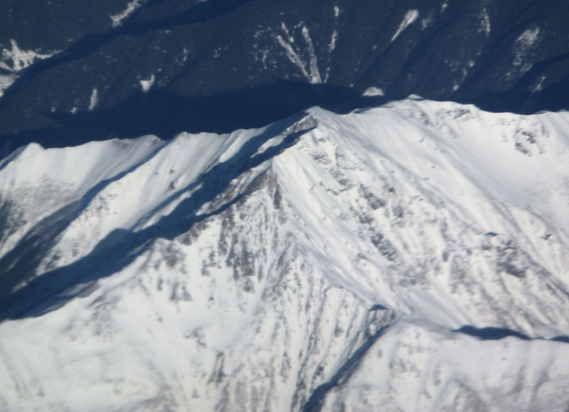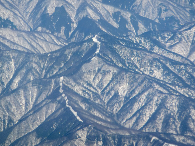 首都圏からもはっきりと見える白い山だが、上空からも目立つ。