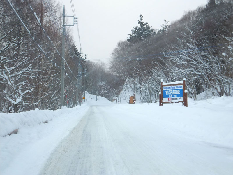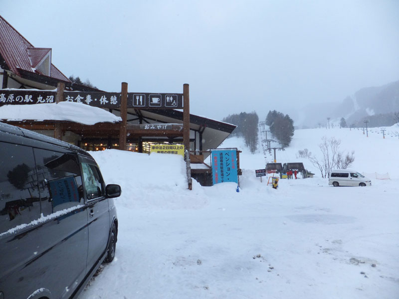 スキー場へは車で。