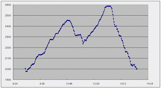 2470m地点まで登ってしまったので250mを無駄にしてしまった。
