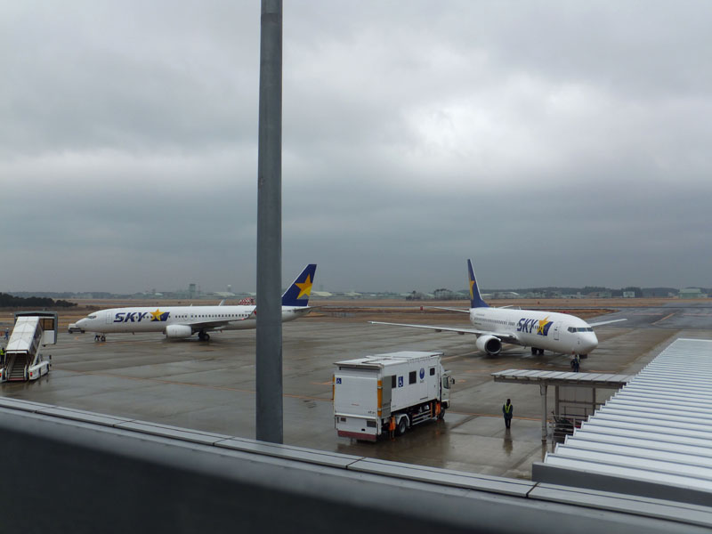 待っているあいだに2機もスカイマーク機が入ってきた。