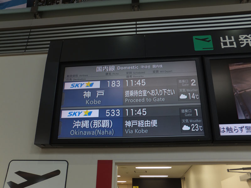 行き 茨城11:45 → 13:10神戸13:45 → 16:00那覇