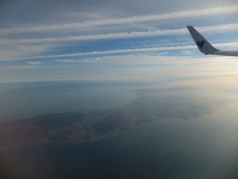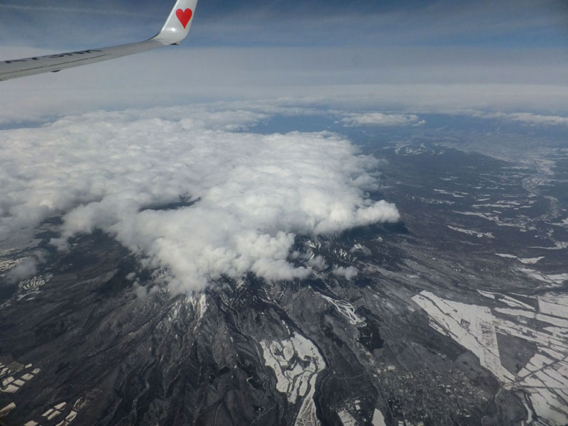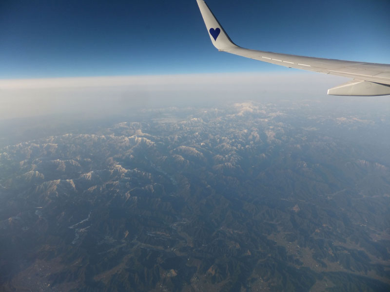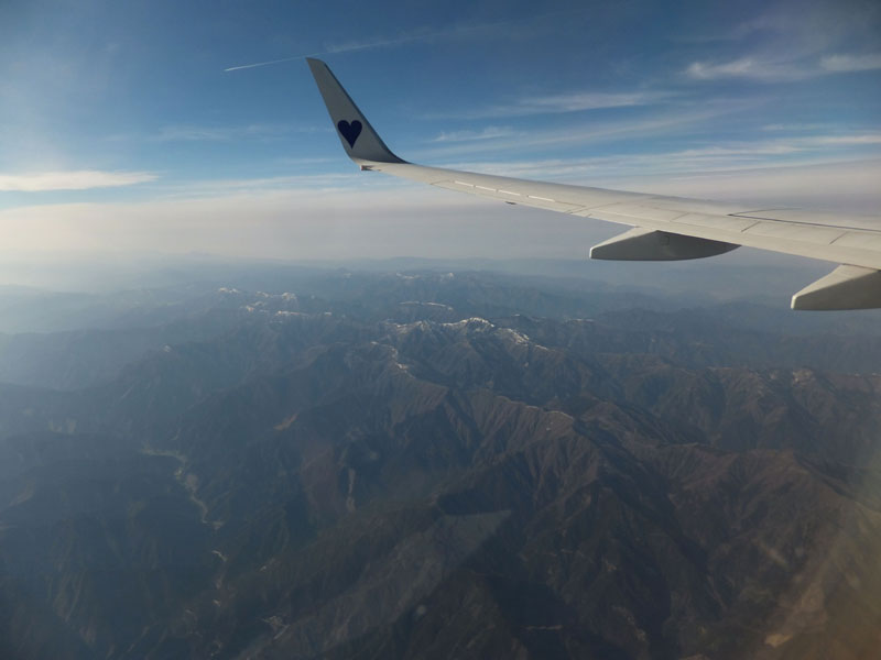 ついさっき雪山の上空を飛んでいたと思ったのに、