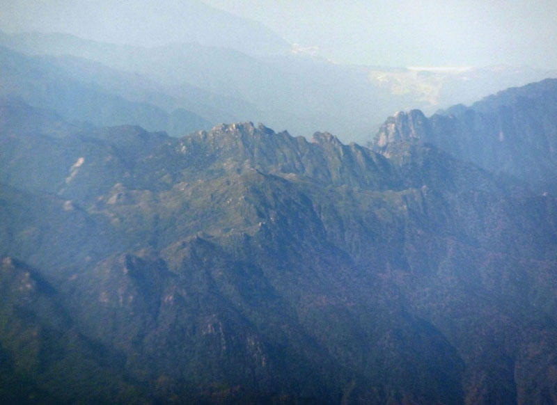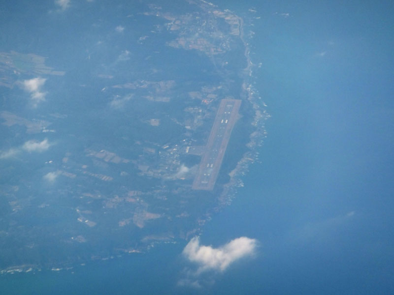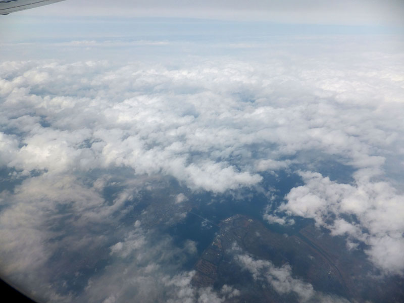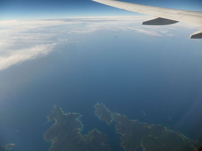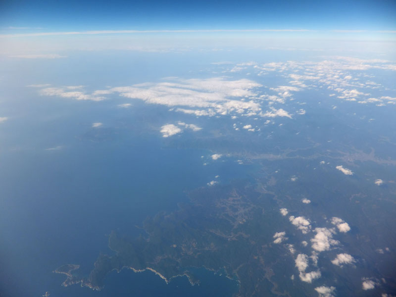 屋久島上空を通過したが、最高峰の宮之浦岳などだけが雲から突き出ていた。