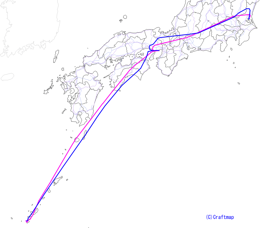 なおルートの重ねと白地図の図法が異なるため誤差が大きい。