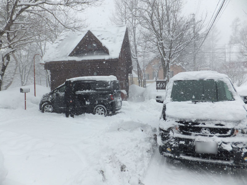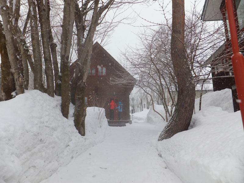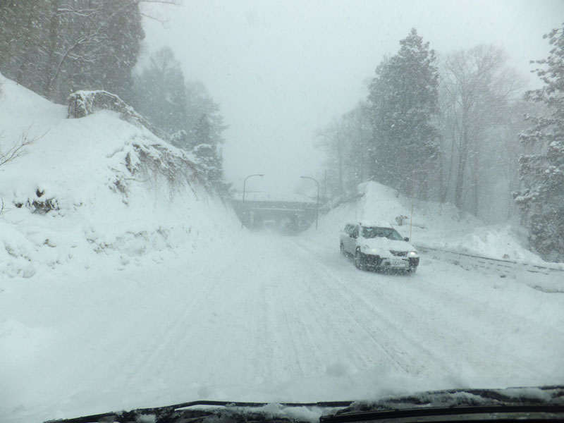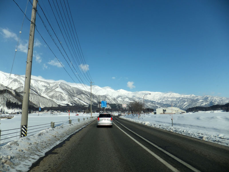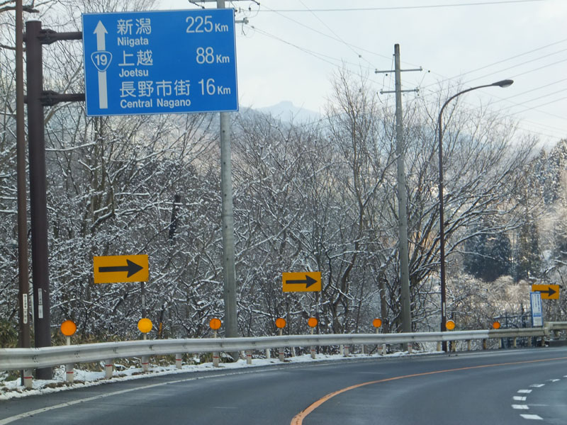 長野ICで降り、白馬方面へ向かうと雪が増えてきた。